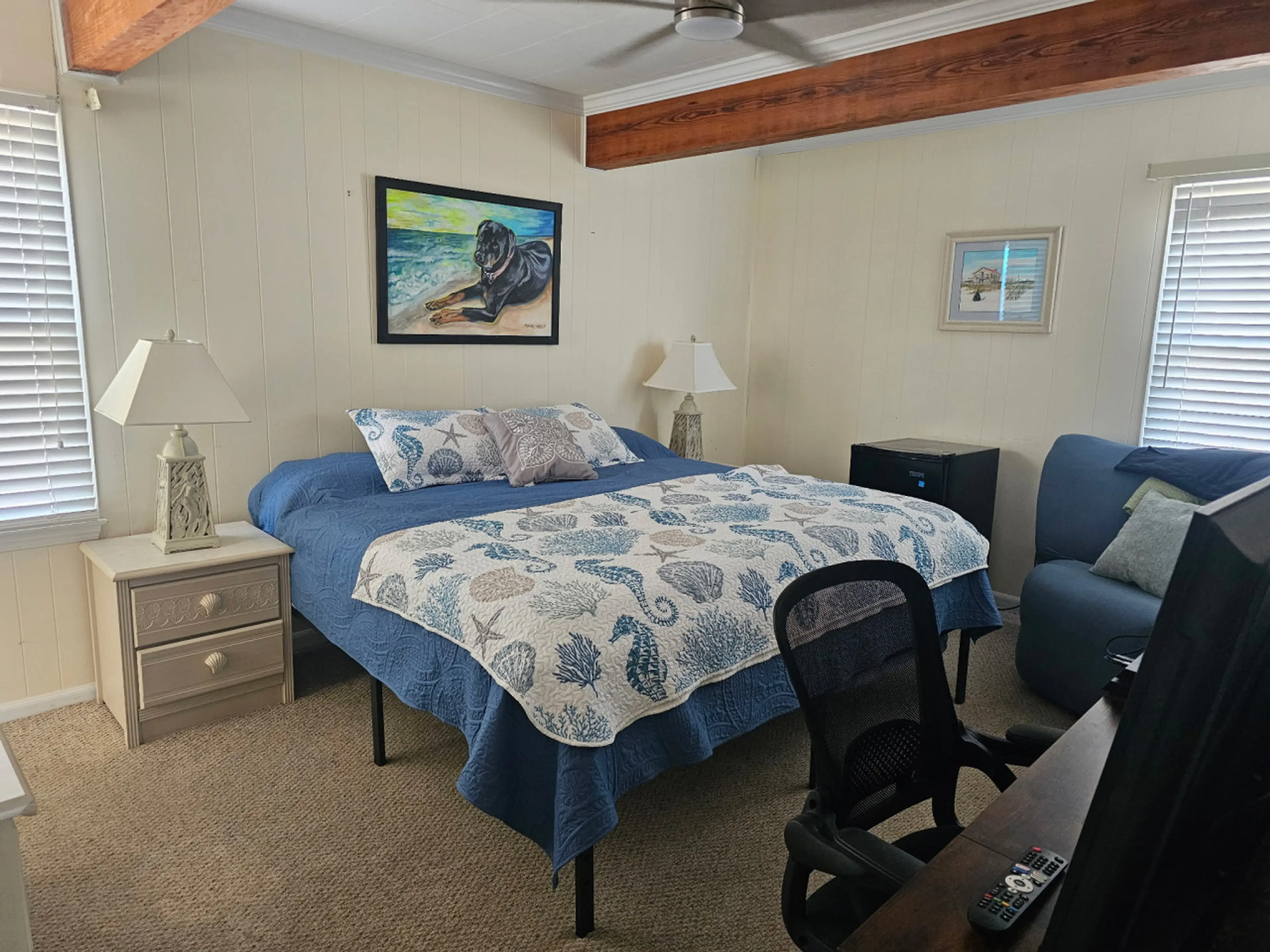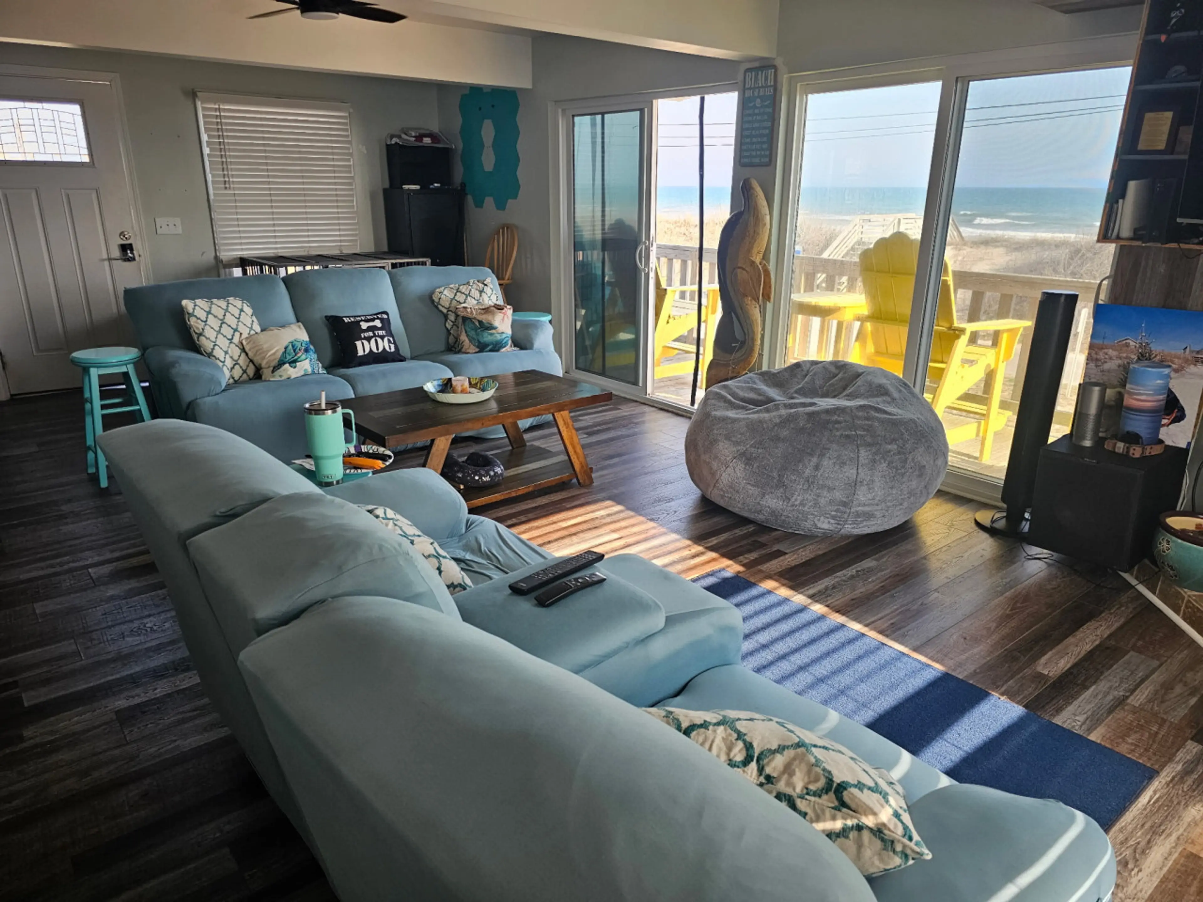 The location is fantastic- not on the front row but we only needed to cross a street to beach access and there were no houses blocking our view of the ocean. The down sides were visible crumbs or sand on the couch when we walked in. There is no dining table to eat or play games which, for a house that sleeps 10 was disappointing. And the dryer didnโt work. The agent and owner were very responsive and kind.